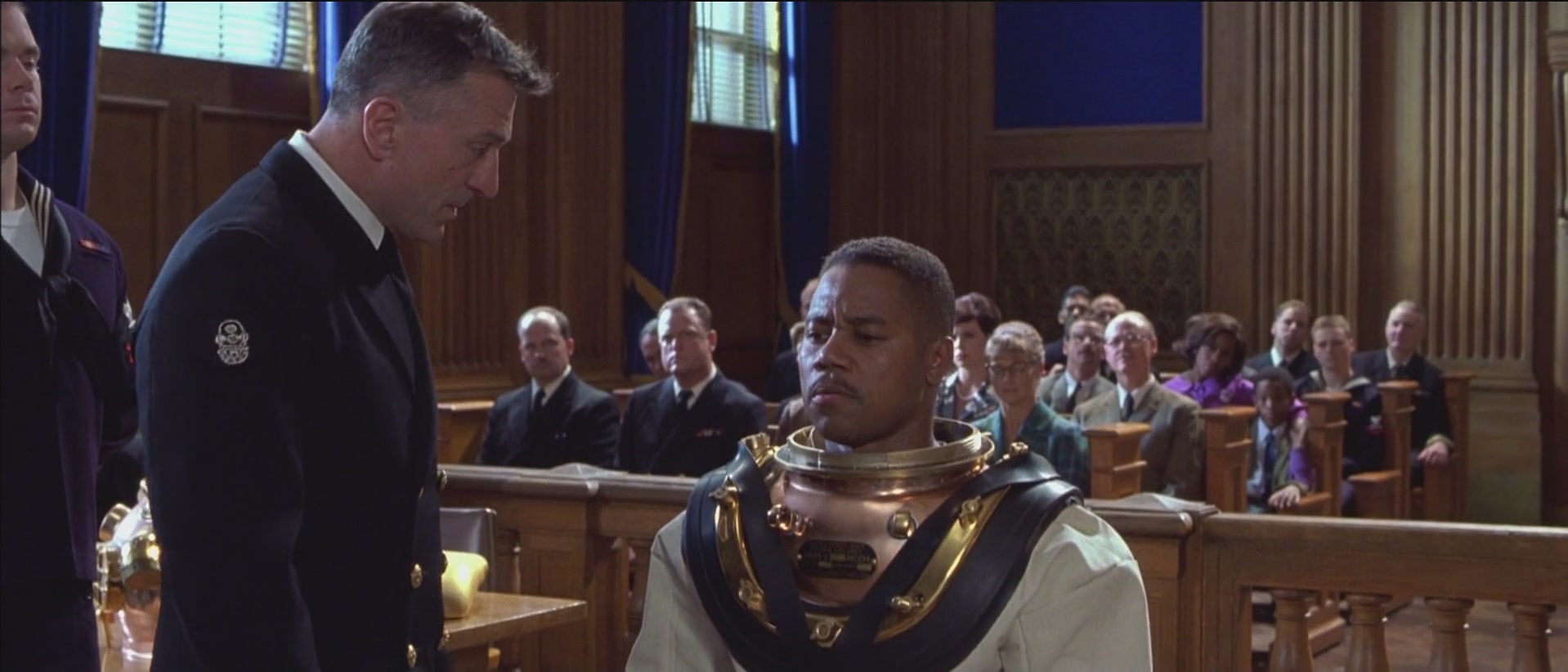 이 영화에서 가장 강렬한 시너지 효과는 단연 두 주연 배우의 대립 구도입니다. 드 니로는 냉정하고 거친 훈련 교관 역을 맡아, 처음엔 칼을 억누르지만 결국 그의 진심과 인내에 무너져갑니다. 쿠바 구딩 주니어는 한 순간도 무너지지 않는 단단함으로, 관객의 마음을 쥐락펴락합니다.